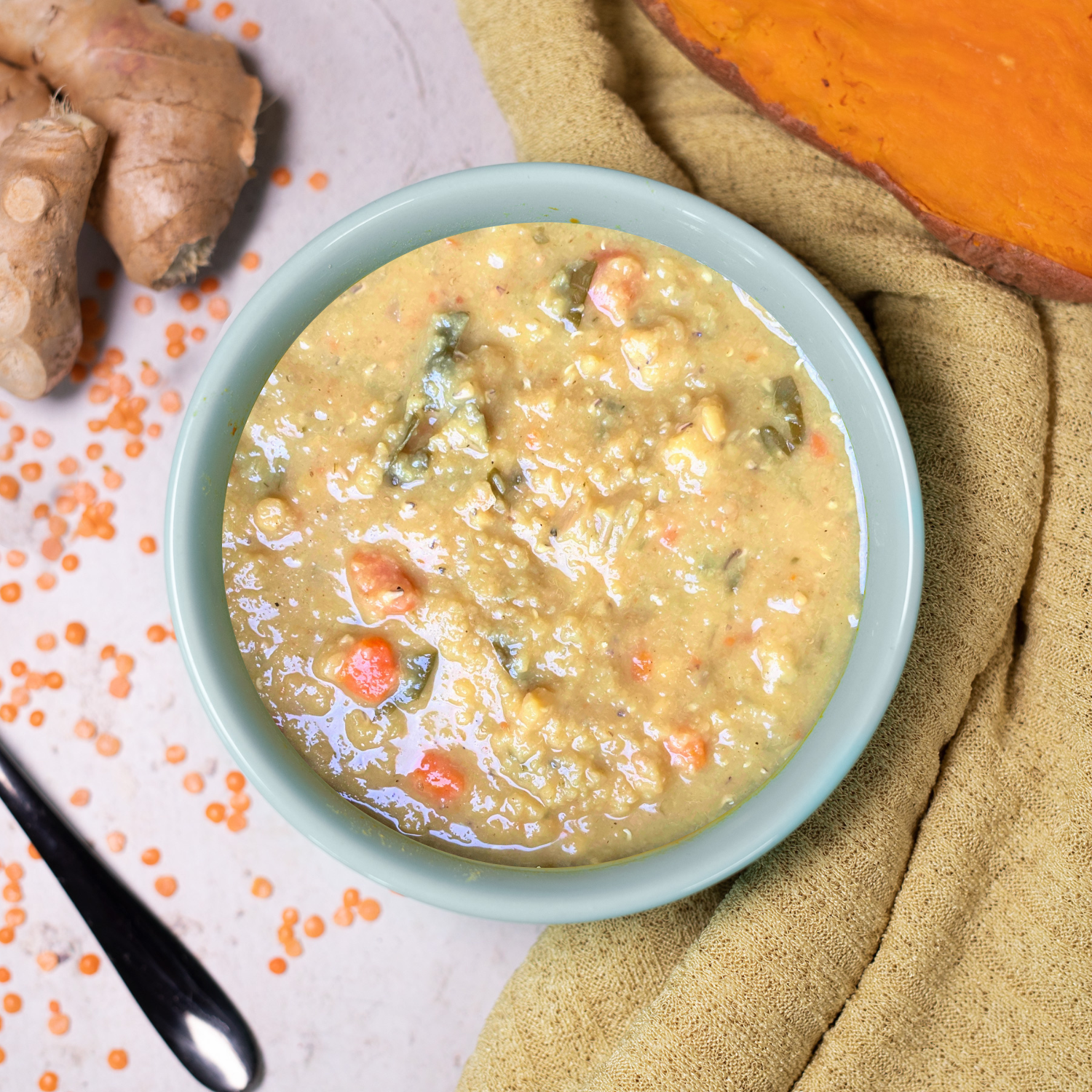 Gingered Red Lentil and Greens Soup